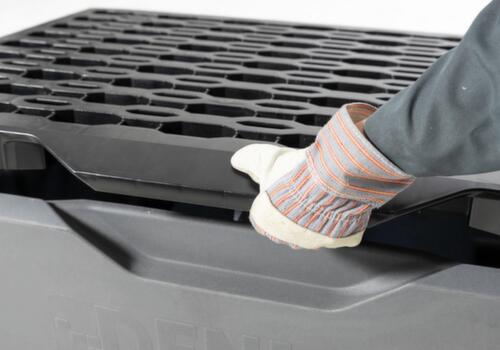 "metaDescription": "Opvangbak pro-line voor vaten van 200 liter - v. 2x200l vat, opvangvol. 220l, HxBxD 400x918x1314mm, m. lekindicator, rooster kunststof, vorksloffen",
