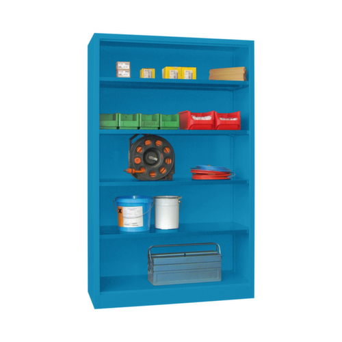 gemakkelijk toegankelijke opbergruimte voor dossiers en werkdocumenten, met 5 ordnerhoogtes. 4 niveau(s) met Stalen bodem volgens uw wensen in stappen van 17 mm verstelbaar. constructie van plaatstaal met slag- en krasvaste poedercoating. niveaus In kleur van de romp.