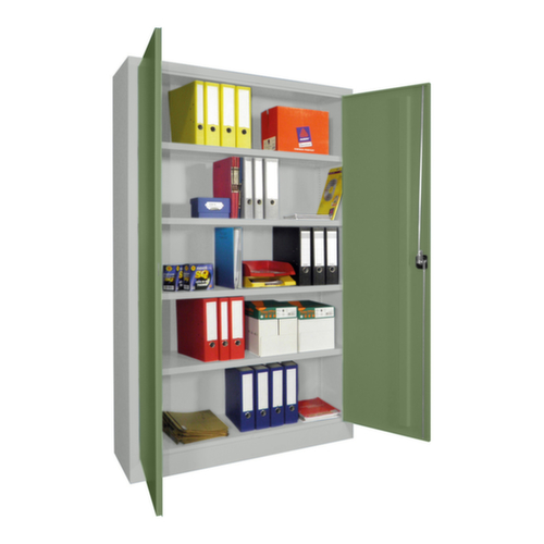 de belangrijkste maten van de PAVOY universele kast Basis in één oogopslag:De romp van de kast is gemaakt van plaatstaal en stevig gelast. Dit maakt de constructie zeer robuust en sterk en dus duurzamer. Omdat de hoeken en randen van de romp gelast zijn, is de kast goed afgedicht en dus beter beschermd tegen stof, vocht en vuil dan bij een schroefconstructie. Bovendien is regelmatig onderhoud en nastellen niet nodig. Zeer flexibele binneninrichting door verstelbare vakhoogte per 17 mm. uitgerust met legborden. Via de dubbele openslaande deur is de kast zeer goed toegankelijk. Door de binnenliggende penscharnieren zien de inliggende deuren er strak uit, want aan de buitenkant zijn geen schroeven of scharnieren zichtbaar. Dus de scharnieren doen geen afbreuk aan het design waardoor de hele kast er hoogwaardiger uitziet. Bovendien is het gladde oppervlak gemakkelijker te reinigen, zonder moeilijk bereikbare plaatsen waar vuil of stof zich kan ophopen. Door het kokerprofiel aan de binnenzijde worden de deuren extra versterkt. afsluitbaar met robuust draaigreep-cilinderslot. greep en slot in één voor gemakkelijk en snel openen en sluiten. De 3-punts-vergrendeling zorgt voor uitstekende stabiliteit en een doeltreffende inbraakbeveiliging. De sokkel onder de kast zorgt ervoor dat het gewicht van de kast gelijkmatig over de vloer wordt verdeeld. Hierdoor staat de kast stabieler en kan hij zwaardere lasten dragen dan een kast met voeten. En omdat er geen vuil, stof en vocht onder kan komen, hoeft er onder de kast niet te worden schoongemaakt.