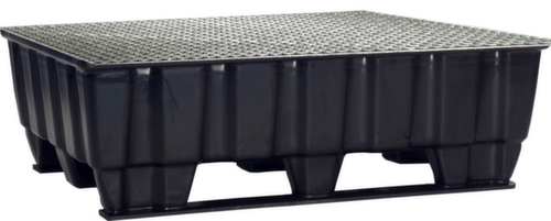 "metaDescription": "PE-opvangbak voor vaten van 2x200 liter - v. 2x200l vat, opvangvol. 220l, HxBxD 360x1220x820mm, m. rooster verzinkt, sleden",