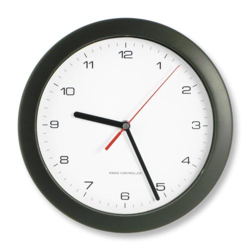 }PEWETA Draadloze wandklok met zwarte behuizing, met Arabische cijfers, Ø 250 mm