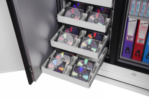 De kast is optimaal geschikt voor de brandwerende opslag van computerdiskettes, tapes en alle vormen van gegevensopslag.