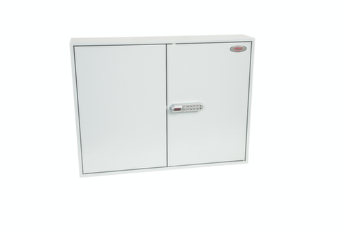 hakenlijsten verstelbaar, genummerd en in verschillende kleuren. De gekleurde sleutelringen en hangers zorgen voor een opgeruimde kast en goed overzicht.. Stofdicht afsluitbaar d.m.v. dubbele openslaande deur. afsluitbaar met elektronisch codeslot dat met een eigen 4-cijferige gebruikerscode kan worden geprogrammeerd en indien nodig eenvoudig kan worden gewijzigd. constructie van staal. romp met slag- en krasvaste poedercoating in grijs. front met slag- en krasvaste poedercoating in grijs. 1DA1E9CBF09DA14CACC1996C68D4375B.