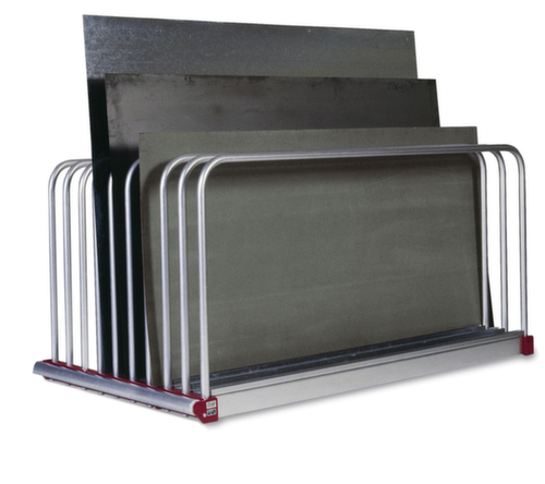 met 9 vakken. voor formaten van 2000x1000 - 3000x2000 mm. opslag via licht lopende rol aan de kopzijde van de bodem. staanders met slag- en krasvaste poedercoating.