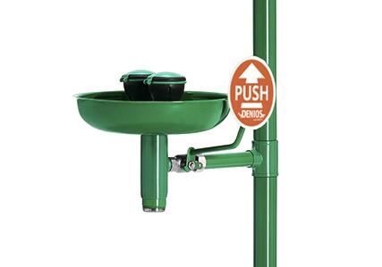 Geschikt voor gebruik in een gevaarlijke omgeving voor bescherming tegen besmetting. Voor opstelling in de binnen. met oogdouche met wasbak en 2 vaste sproeikoppen.