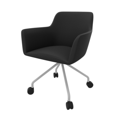Ideaal voor wachtkamers, vergader- en conferentieruimtes of andere kantooromgevingen. Dankzij de unieke combinatie van praktische eigenschappen en artistieke elegantie vindt u bij de stoelen uit de serie City de bezoekersstoel die bij u past. 4-voetonderstel met 4 wielen van ronde buis-staal verchroomd. uitgerust met vaste armleuningen. zitschaal van PU-schuim in zwart.