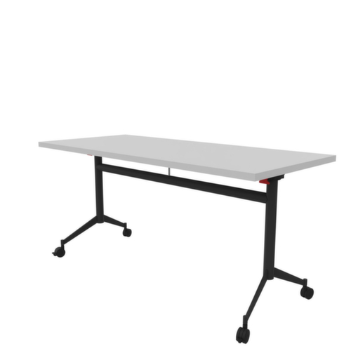 Handig op te bergen, want het tafelblad kan met behulp van de greepstang 90° worden gekanteld. plaatvorm hoekig. T-voetonderstel van metaal met epoxypoedercoating in donkergrijs. ovale buis. 4 wielen onder het frame zorgen voor de nodige mobiliteit op de werkvloer. blad van Spaanplaat met slijtvaste en vochtbestendige melaminecoating in decor grijs. bladdikte 30 mm. alle randen zijn door slagvaste ABS-randen beschermd tegen ontsierende scheuren en beschadigingen. uitgerust met haak- en vergrendelingssysteem om tafelbladen aan de voor- en zijkant te koppelen.