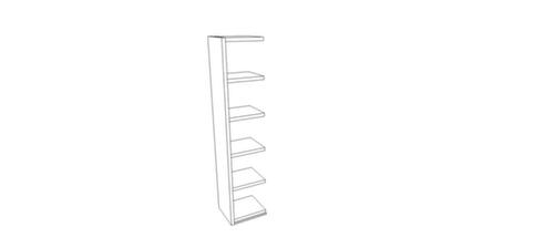 opbergruimte voor ordners, archiefmappen en ander kantoormateriaal op 5 ordnerhoogtes met houten vloer. vakhoogtes zijn afhankelijk van het doel en uw behoeften verstelbaar in stappen van 32 mm. gebruik tweezijdig - omdat vrijstaande opstelling mogelijk is, is een ruimte gemakkelijk op te delen of kunnen er kleine nissen worden gecreëerd. constructie van hout met onderhoudsvriendelijke melamineharscoating. romp in notenboom, niveaus notenboom. met legborden. alle randen zijn door slagvaste ABS-randen beschermd tegen ontsierende scheuren en beschadigingen.