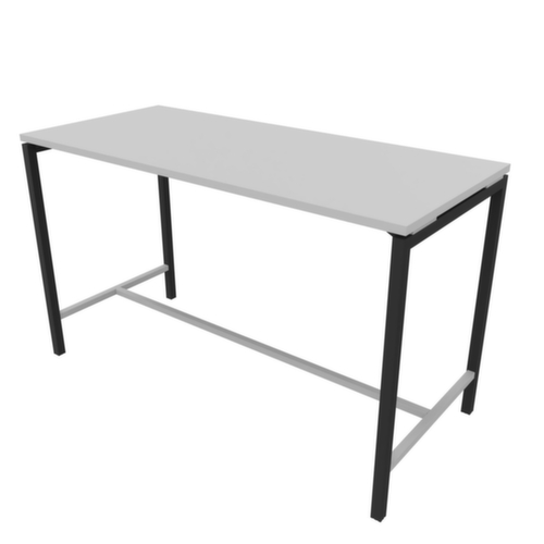 plaatvorm hoekig. 4-voetonderstel met diagonale en lengteschoren van 40 x 40 mm vierkante stalen buis met epoxypoedercoating in donkergrijs. traversen zilverkleurig. Stelvoeten zorgen door de nivellering van oneffenheden voor een stabiele stand. blad van Spaanplaat met krasvaste en onderhoudsvriendelijke melamineharscoating in decor grijs. alle randen zijn door slagvaste ABS-randen beschermd tegen ontsierende scheuren en beschadigingen.