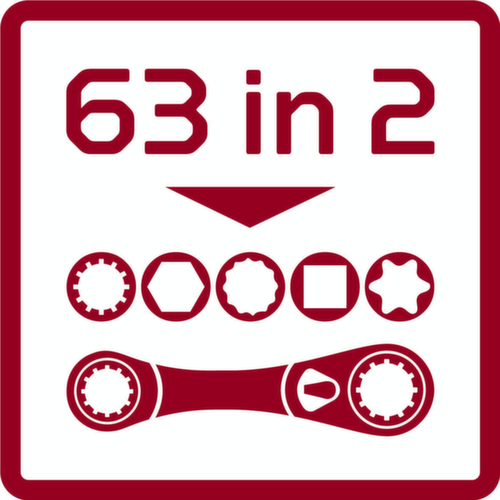 "longDescription": "63 in 2, Rechte vorm, Met omkeerbare hendel, Ratelmechanisme met 72 tanden, Omkeerhoek 5°, Mat gesatineerd verchroomd oppervlak, Chroom vanadium staal<br>",