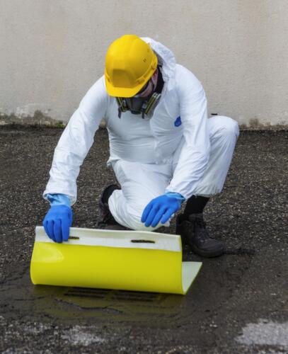 geschikt voorkomt dat ongewenste vloeistoffen in het riool of de bodem binnendringen bij lekkages. uitgerust met kunststofmix aan de onderkant die zich aan de bodemgesteldheid aanpast. Verwerking extreem dicht en flexibel.