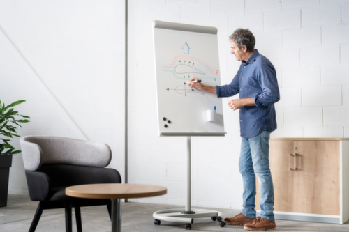 "metaDescription": "Rocada Mobiele flipover, hoogte 1500 - 1900 mm - HxBxD 1500-1900x680x640mm, bord HxB 1040x680mm, kunststof coating, magnetisch, m. papierhouder, haken, frame staal RAL 7038,5wielen",