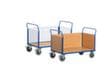 "longDescription": "<h2>Trolley met drie wanden</h2><strong>Draagvermogen tot 500 kg</strong><br><ul><li>Sectioneel stalen frame gemaakt van hoekstaal en vierkante buis</li><li>Kopwanden en zijwanden van stalen buis ø 26,9x1,75 mm, vast aan het basisframe gelast, poedercoating gentiaanblauw RAL5010</li><li>Naar keuze met draadgaas of met houtvezelplaat in beukenstructuur</li><li>Draagvlak van houtvezelplaat in beukenstructuur</li><li>2 Zwenk- en 2 bokwielen met blauwgrijze TPE-banden, verzinkte behuizing, naaf met groefkogellager</li><li>Zwenkwiel met rem in overeenstemming met de Europese norm EN 1757-3</li></ul>",