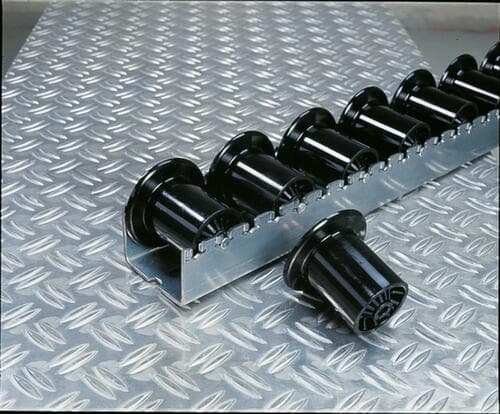 "description": "tot 130 kg draagvermogen per rol, met cilinder- of spoorkransrollen, van kunststof of staal, in verschillende lengtes",