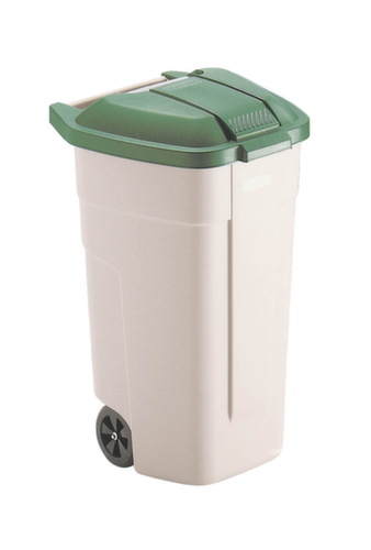 "metaDescription": "Rubbermaid Afvalverzamelbak, 100 l, beige, deksel groen - 1x100l, HxBxD 850x510x530mm, romp PP beige, deksel PP groen, 2wielen",