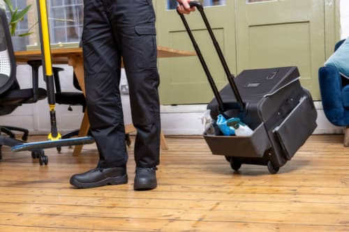 "longDescription": "<h2>Reinigingswagen</h2><strong>uiterst manoeuvreerbaar en robuust voor intensief gebruik</strong><br><ul><li>Compact ontwerp voor gebruik in hotels, facility management en schoonmaakwerkzaamheden.</li><li>Absoluut duurzaam - met Teflon coating tegen water, olie en vlekken</li><li>Gemakkelijk te verplaatsen dankzij de kogelgelagerde wielen en de praktische aluminium telescoopsteel</li><li>Veel ruimte - verschillende compartimenten voor diverse werkbenodigdheden en verwijderbare caddy</li><li>Flexibel en toch veilig - verdelers kunnen afzonderlijk worden verdeeld en hebben een stevige grip tijdens transport</li></ul>",