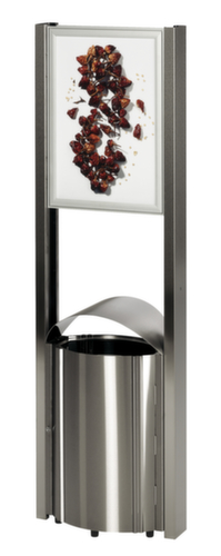 "longDescription": "<h2>Rvs afvalbakken</h2><strong>Staande bak voor buiten met reclamevlak</strong><br><ul><li>duurzame systainer in exclusief design</li><li>met verzinkte binnenbak</li><li>met vergrendelbare voordeur</li><li>gebogen afdak</li></ul><br><h3>Reclamevlakken:</h3><ul><li>twee klapframes, weersbestendig, DIN A3</li><li>waterbestendig plakaatoppervlak</li><li>weersbestendige achterwand van polystyreen</li><li>aluminium klapframeprofiel</li><li>voorbereid voor vloerbevestiging</li></ul><br><h3>Inhoud levering:</h3><ul><li>incl. montagemateriaal</li></ul><br>3 jaar garantie<br>",