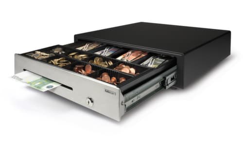 "longDescription": "<h2>Kassalade</h2><strong>individuele indeling dankzij instelbare vakken</strong><br><ul><li>Robuust - gemaakt van staal</li><li><strong>gemakkelijk openen</strong> - elektrische opening van de kassalade via RJ12-aansluiting</li><li><strong>individuele vormgeving</strong> - vakken voor bankbiljetten en munten uitneembaar en verstelbaar</li><li><strong>veilig bewaren van grote bankbiljetten en waardepapieren</strong> - met documentensleuf voor uit het zicht bewaren</li></ul>",