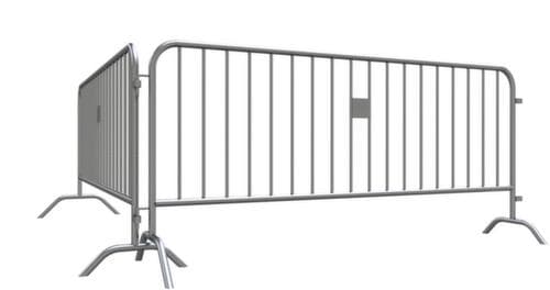 "longDescription": "<h2>Zware barrière</h2><strong>voor het beveiligen van evenemententerreinen</strong><br><ul><li><strong>eindeloos uitbreidbaar</strong> - koppelen van elementen via aangelaste beugels en haken</li><li><strong>zeer weerbestendig en duurzaam</strong> - van vuurverzinkte stalen buis</li></ul><br>Veiligheid op evenementen is een groot probleem. Concerten, voorstellingen of andere grote evenementen trekken altijd veel publiek. Aan de ene kant moeten mensen worden beschermd, aan de andere kant moeten voorwerpen tegen hen worden beschermd. <br><br>Met deze afrastering kunt u gebieden en paden duidelijk afbakenen. U kunt gemakkelijk verschillende elementen met elkaar verbinden met haken en verbindingsbeugels. Deze zijn aan de zijkant van het frame gelast en zijn dus ook bestand tegen belastingen.<br><br>De gelaste stalen constructie is dankzij het gegalvaniseerde oppervlak geschikt voor gebruik buitenshuis. De barrière staat stevig op de grond dankzij zijn 2 meter gebogen staal.<br><br>U krijgt de barrière in verschillende lengtes en kunt ze ook zo vaak als u wilt met elkaar verbinden en combineren.<br>",