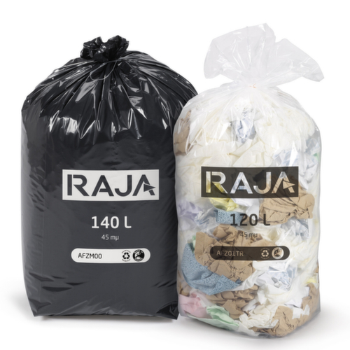 "longDescription": "<h2>Standaard afvalzakken zwart 45 µ, 700 x 1100 mm RAJA</h2><p>Geschikt voor bijna alle soorten afval in horecagelegenheden en bedrijven: In standaard afvalzakken van 45 µ, naar keuze zwart of transparant, kunnen restafval, keukenafval en recyclingafval absoluut schoon en hygiënisch worden verwerkt. De standaard 45 µ-afvalzakken van LDPE zijn dankzij de iets kleinere foliedikte milieuvriendelijker dan onze standaard 60 µ-afvalzakken - en nog steeds krachtig: de standaard 45 µ-afvalzakken zijn verkrijgbaar in verschillende formaten van 30 l inhoud tot 140 l inhoud en in twee kleurvarianten: zwart (ondoorzichtig) of transparant. Let op: De afvalzakken worden geleverd zonder sluitingen of sluitbanden - wij raden aan om kabelbinders, een stuk plakband of twist ties te gebruiken voor een veilige en hygiënische sluiting. In de meeste gevallen is een goede knoop ook voldoende De meest milieuvriendelijke manier is altijd om afval te voorkomen! Door afval op de juiste manier te scheiden, kun je onvermijdelijk afval recyclen. Afvalscheidingscontainers en een intuïtief te begrijpen kleurensysteem helpen je om je afval netjes weg te gooien. Alle details in één oogopslag: - Standaard afvalzakken gemaakt van 45 µ dikke LDPE-folie - Geleverd op rol- 80% gerecycled materiaal, waarvan 50% post-consumer afval- Lichtgewicht en toch robuuste versie van de standaard 60 µ afvalzakken- Verkrijgbaar in zwart (ondoorzichtig) of transparant- Geleverd zonder afdichtingsmateriaal</p><br>",