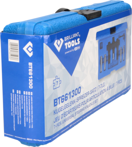 "longDescription": "7-delige set,voor het spreiden van b.v. aluminium/gietijzeren fusees,bij demontage en montage van schokbrekers,het speciale gereedschap voorkomt het raken van de onderdelen en daardoor vermoeiing en dus breuk van het materiaal,geschikt voor b.v. VW, Audi, BMW, Škoda, Seat, Peugeot, Renault, Citroën, Ford, etc.,De BRILLIANT TOOLS klem- en strooigereedschapset BT6613000 is uitgerust met 2 verwisselbare strooigereedschappen (5 en 8 mm diepte) voor verschillende strooihoeken. De geleidepennen (8, 10 en 12 mm) zijn bijvoorbeeld geschikt voor de schokdemperbevestiging op de wiellagerbehuizing, bij het vervangen van de schokdemper van de kogelgewrichtbevestiging op de dwars-/driehoekscontrolearm, bij het demonteren van de veerpoot. Door de optimale bevestiging van het gereedschap met bouten, die in de schroefgaten worden gestoken, is wegglijden bijna onmogelijk. De spreider wordt in de opening gedrukt via een spindel met een inbus van 13 mm. Slaan met een hamer is niet meer nodig. Dit vermindert het risico van materiaalmoeheid of breuk, vooral bij aluminium stuurdelen. ONZE KWALITEIT: BRILJANT, ONZE PRIJZEN: SMART, Elk stuk gereedschap bevat meer dan een kwart eeuw ervaring van onze experts. Deze compromisloze kwaliteit, professioneel gereedschap met de hoogste kwaliteit voor het zware dagelijkse werk, is voor ons een van de succesrecepten. Wij hebben geen grote verkoopstructuur en extravagante marketingactiviteiten en kunnen u de producten dus aanbieden tegen een sensationeel gunstige prijs-kwaliteitverhouding. Bespaar geld zonder uw kwaliteitsnormen te verlagen! Een kwaliteitsgereedschap van KS TOOLS.<br>",
