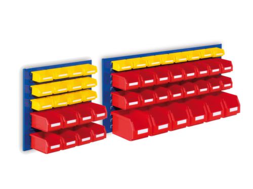"longDescription": "<h2>Gegroefde plaat</h2><ul><li>Robuuste gegroefde paneelwanden, gelakt lichtgrijs RAL 7035 of gentiaanblauw RAL 5010</li><li>Opbergbakken met open voorzijde van slagvast polyethyleen </li><li>Naar keuze met 8 bakken maat 7 en 12 bakken maat 8 of met 6 bakken maat 6, 16 bakken maat 7 en 8 bakken maat 8</li></ul>",