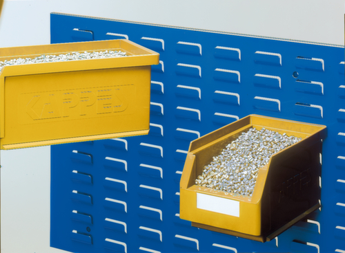 "longDescription": "<h2>Gegroefde plaat</h2><ul><li>Robuuste gegroefde paneelwanden, gelakt lichtgrijs RAL 7035 of gentiaanblauw RAL 5010</li><li>Opbergbakken met open voorzijde van slagvast polyethyleen </li><li>Naar keuze met 8 bakken maat 7 en 12 bakken maat 8 of met 6 bakken maat 6, 16 bakken maat 7 en 8 bakken maat 8</li></ul>",