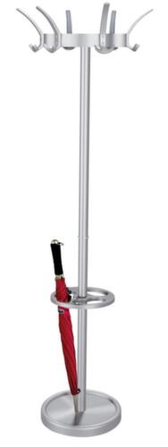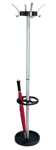 "description": "HxØ 1800x500mm, 4hoed-/8jashaken, parapluhouder/druppelvanger, staal, aluminium-zilver/zwart",