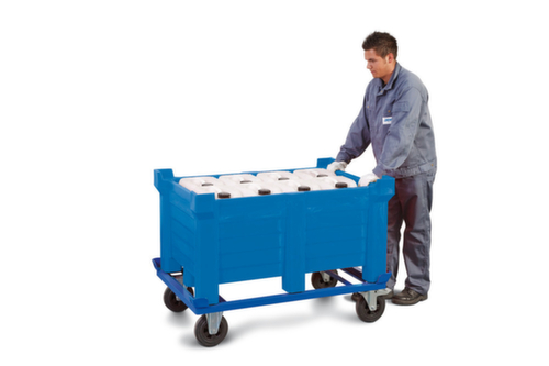 de belangrijkste maten van de stapelbak in één oogopslag:van slagvast polyethyleen in blauw. Wanden gesloten, bodem gesloten. stapelhoek veilig 5-voudig stapelbaar.