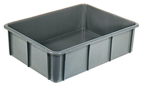maten afgestemd op europallet. van slagvast polyethyleen in grijs. Wanden gesloten, bodem gesloten. eenvoudig transport door draaggrepen. Meervoudig stapelbaar. geschikt voor levensmiddelen. Temperatuurbestendig -30 °C tot +60 °C.