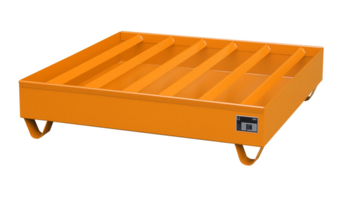 "metaDescription": "Stapelbare opvangbak met profielrooster - v. 4x200l vat, opvangvol. 230l, HxBxD 285x1200x1200mm, staal, RAL2000",