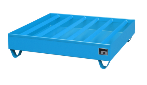 "metaDescription": "Stapelbare opvangbak met profielrooster - v. 4x200l vat, opvangvol. 230l, HxBxD 285x1200x1200mm, staal, RAL 5012",