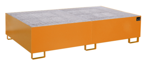 "metaDescription": "Stellingbak met rooster - opvangvol. 1000l, HxBxD 505x2150x1300mm, m. rooster, staal, RAL2000",
