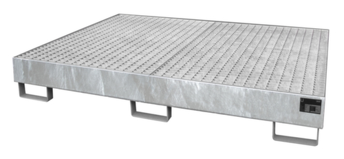 "metaDescription": "Stellingbak met rooster - opvangvol. 240l, HxBxD 250x1750x1300mm, m. rooster, staal verzinkt",