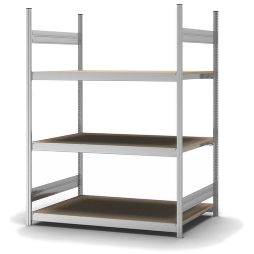 de belangrijkste maten van de hofe breedvakstelling in één oogopslag:3 niveaus met houten vloer. niveaus met versteviging door dwarsprofielen. vakhoogtes zijn afhankelijk van het doel en uw behoeften verstelbaar in stappen van 25 mm. gebruik eenzijdig - ontworpen voor plaatsing tegen een wand. Door gegolfde verbindingsplaten in de diepterichting en stalen voetplaten staat de stelling zeer stevig. De profielafdekkappen bovenaan zorgen voor een nette afwerking. constructie van staal, staanders met corrosiebeschermende zinklaag, traversen met corrosiebeschermende zinklaag.