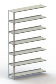 De belangrijkste maten van de META dossierstelling in één oogopslag:Op 7 niveau(s) met legborden van hoogwaardig plaatstaal / 7 ordnerhoogtes kunt u dossiers, ordners en overig kantoormateriaal optimaal ordenen. vakhoogtes zijn afhankelijk van het doel en uw behoeften verstelbaar in stappen van 25 mm. niveaus met aanslagrand aan achterzijde om te voorkomen dat ordners eruit vallen. M-vormige langsdragers met 5-voudige afkanting zorgen voor hoge stabiliteit en bescherming tegen verwondingen. gebruik eenzijdig - ontworpen voor plaatsing tegen een wand. constructie van staal, staanders met corrosiebeschermende zinklaag, niveaus met corrosiebeschermende zinklaag.