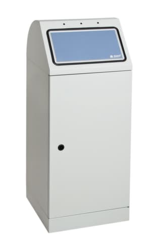 de belangrijkste maten van de stumpf afvalbak Flex M in één oogopslag:geschikt voor binnen. Met klep - de opening gebeurt handmatig door licht tegen de klep te drukken. De grote opening sluit onmiddellijk zodat onaangename geurtjes niet kunnen ontsnappen. A9344A0842107344AE176A25FD360C18. Eenvoudig te legen via afsluitbare openslaande deur aan de voorzijde. bak afsluitbaar met vierkantslot. romp van Kwaliteitsstaalplaat met slag- en krasvaste poedercoating in RAL7035 lichtgrijs. deksel van Kwaliteitsstaalplaat met slag- en krasvaste poedercoating. onderbouw 2 stelvoeten aan de voorzijde voor het egaliseren van oneffenheden in de vloer.