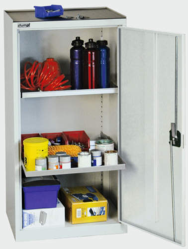 "longDescription": "<h2>stumpf werkplaatskast Serie 3000</h2><h3>eenvoudig toegankelijk dankzij uittrekbare legborden</h3><p>De materiaalkast met opvanglegborden is in industrie- en ambachtsbedrijven en in werkplaatsen en laboratoria ideaal voor de opslag van gereedschap, elektronische componenten, kleine onderdelen of andere werkmaterialen. </p><strong>de belangrijkste maten van de stumpf universele kast Serie 3000 in één oogopslag:</strong><ul><li>hoogte x breedte x diepte 1000 x 500 x 500 mm</li><li>2 niveaus met opvanglegborden</li><li>draagvermogen per niveau 35 kg</li><li>uittrekbaar 80 %</li></ul><strong>Hoe is de kast uitgerust?</strong><p>De romp van de kast is gemaakt van hoogwaardig dun plaatstaal en stevig gelast. Dit maakt de <strong>constructie zeer robuust en sterk</strong> en dus duurzamer. Omdat de hoeken en randen van de romp gelast zijn, is de kast goed afgedicht en dus beter beschermd tegen stof, vocht en vuil dan bij een schroefconstructie. Bovendien is regelmatig onderhoud en nastellen niet nodig. 2 niveau(s) met opvanglegborden bieden voldoende opbergruimte om handgereedschap, kleine onderdelen zoals schroeven, spijkers en pluggen, blikken lak en andere kleinemballage zoals monsters en laboratoriumbenodigdheden onder te brengen. De niveaus kunnen uit de kast worden getrokken, zodat de volledige inhoud gemakkelijk toegankelijk is. Het uittrekelement loopt zeer soepel en stil op de kogelgelagerde telescooprails en is dankzij het hoge draagvermogen ook geschikt voor zware voorwerpen. Zeer flexibele binneninrichting door verstelbare vakhoogte per 25 mm. uitgerust met legborden. romp met eenvoudige openslaande deur. afsluitbaar met robuust draaigreep-cilinderslot. greep en slot in één voor gemakkelijk en snel openen en sluiten. De <strong>3-punts-vergrendeling</strong> zorgt voor uitstekende stabiliteit en een doeltreffende inbraakbeveiliging. </p><ul><li>romp met slag- en krasvaste poedercoating in RAL7035 lichtgrijs</li><li>front met slag- en krasvaste poedercoating in RAL7035 lichtgrijs</li><li>niveaus met corrosiebeschermende zinklaag</li><li>5 jaar/jaren garantie</li></ul><p></p></ul><ul>",