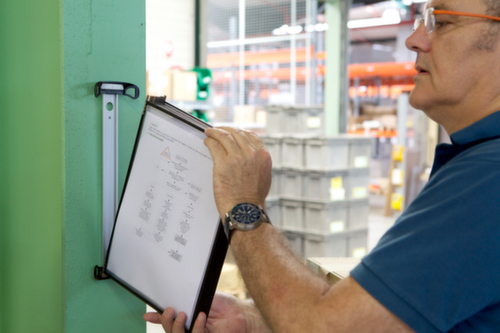 "longDescription": "Tarifold presenteert <br/> <strong> Een gepatenteerd presentatiesysteem</strong>. <br/> Gemakkelijker, handiger en efficiënter in gebruik en voldoet aan de eisen van de moderne industrie. <br/> Beschermt uw veelgebruikte documenten tegen stof, spatten en dagelijkse slijtage. <br/> Dankzij het krachtige neodymium magneetsysteem worden de displayborden vier keer sneller bevestigd dan normaal! <br/> Dit bespaart u tijd en geld: Snel invullen en verwijderen van documenten gegarandeerd! <br/> Ideaal voor elke industriële omgeving waar ISO-, LEAN-, 5S- of KAIZEN-normen worden toegepast <br/> Met 10 PP Easy Load-displayborden en zelfklevende magneetstrip voor snelle montage op magnetische oppervlakken. <br/> De clou - met de bijgeleverde T-clips kan het etalagesysteem zonder gereedschap aan bijna alle aluminiumprofielen met 8 of 10 mm groef worden bevestigd en ook weer worden verwijderd zonder het aluminiumprofiel te beschadigen.<br>",