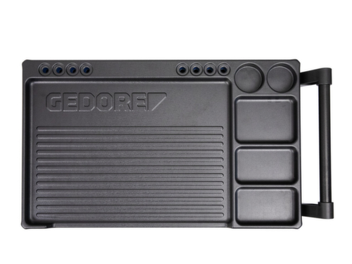 "longDescription": "Opbouw: Afmetingen: H 985 x B 775 x D 475 mm, plaatstaal, corrosiebestendig en krasvast gepoedercoat, Legbord van ABS-kunststof met 3 vakken voor kleine onderdelen, 2 bakjes voor blikjes, 8 bakjes voor schroevendraaiers, Wendbaar en gemakkelijk te sturen dankzij mobiele stuurgreep, Zijpanelen met Euro-perforaties 10 x 38 mm voor het bevestigen van haken en gereedschap, Veiligheid dankzij hielbescherming voor personen, Laden: Centrale vergrendeling met cilinderslot, Kogelgelagerde geleiderails, Kan individueel worden uitgerust met lengte- en dwarsverdelers (ook afzonderlijk verkrijgbaar), Draagvermogen per lade 40 kg, GEDORE high-performance chassis: Totaal draagvermogen statisch: 900 kg / dynamisch: 650 kg, 2 GEDORE high-performance wielen met rollagers (bokwielen Ø 200 mm), 2 GEDORE lichtlopende wielen met kogellagers (zwenkwielen Ø 125 mm), beide met totaalrem, GEDORE asontwerp zorgt voor een soepele loop, wendbaarheid en tracking, zelfs onder maximale belasting: Lichtlopend, wendbaar en koersvast, Assortiment: Gereedschappen in metrische maten, Met GEDORE Check Tool System: Volledigheidcontrole met behulp van 2-kleurige schuimrubberen inzetstukken, Elk gereedschap ligt antislip in zijn eigen uitsparing, Gemakkelijk te verwijderen dankzij verzonken grepen, Bestand tegen oliën en vetten<br>",