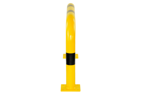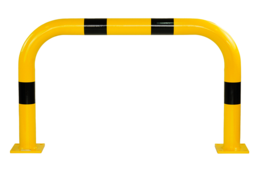 de belangrijkste maten van het UDOBÄR aanrijdbeveiligingssysteem in één oogopslag:van staal met slag- en krasvaste poedercoating in geel/zwart. voor vastschroeven aan bodemplaat.