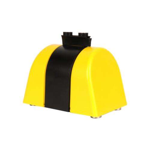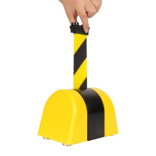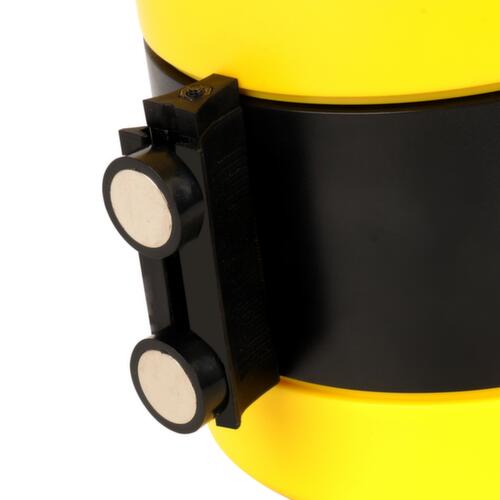 De belangrijkste afmetingen van het UDOBÄR afzetsysteem in één oogopslag:riemband van polyester in geel/zwart. riem automatisch intrekbaar. van kunststof. Magnetische fixatie.