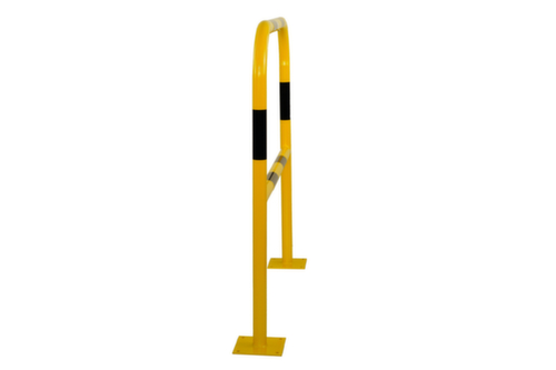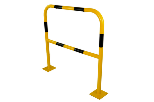 de belangrijkste maten van het UDOBÄR aanrijdbeveiligingssysteem in één oogopslag:constructie met tussenbuis. van staal met slag- en krasvaste poedercoating in geel/zwart. Vastschroefbaar door aangebrachte gaten.
