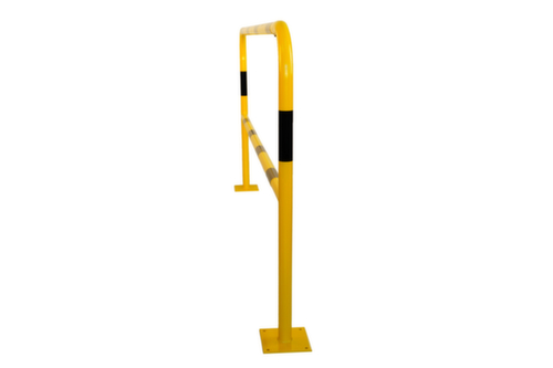 de belangrijkste maten van het UDOBÄR aanrijdbeveiligingssysteem in één oogopslag:constructie met tussenbuis. van staal met slag- en krasvaste poedercoating in geel/zwart. Vastschroefbaar door aangebrachte gaten.