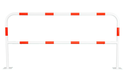 de belangrijkste maten van het UDOBÄR aanrijdbeveiligingssysteem in één oogopslag:constructie met tussenbuis. van staal met slag- en krasvaste poedercoating in wit/rood. Vastschroefbaar door aangebrachte gaten.