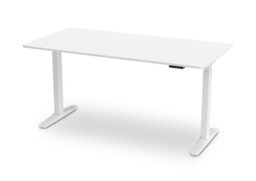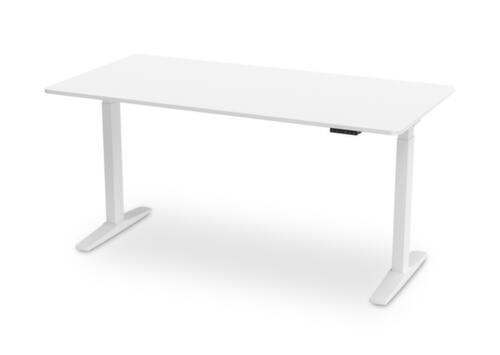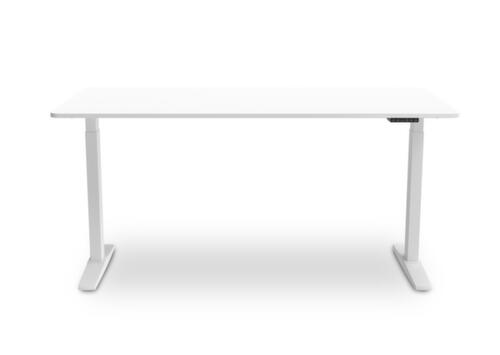 De belangrijkste afmetingen van het UDOBÄR bureau in één oogopslag:blad van spaanplaat met onderhoudsvriendelijke melamineharscoating in decor wit. plaatvorm rechthoekig. rand met stootvaste ABS-lijmrand. T-voetonderstel van metaal met slag- en krasvaste poedercoating in wit. Buisvorm rechthoekige buis. hoogteverstelling door 2 elektromotoren. De besturing met handschakelaar is eenvoudig en zichtbaar op het display. Dit zorgt voor een eenvoudige en weinig inspannende afstelling. functies: Opslaan en automatisch oproepen van geprogrammeerde tafelhoogtes dankzij memoryfunctie. De automatische botsingbescherming stopt onmiddellijk bij weerstand van boven of onder en zorgt zo voor absolute veiligheid. frame met vloerbeschermers. met eurostekker.