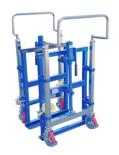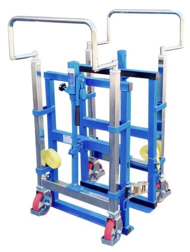 De belangrijkste maten van de UDOBÄR van de UDOBÄR meubelroller in één oogopslag:Hydraulische hefbeweging. platform van plaatstaal. frame van staal met slag- en krasvaste poedercoating in RAL5017 verkeersblauw. 4 wielen zorgen voor de benodigde mobiliteit tijdens dagelijkse werkzaamheden. wiel Ø 150 mm. Met stevig polyurethaan-banden op staal-velg. wielnaaf met lichtlopende en onderhoudsvrije groefkogellager.