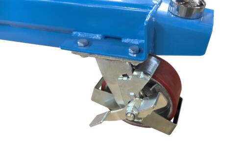 van staal met slag- en krasvaste poedercoating in RAL 5015 hemelsblauw. hefuitvoering handmatig met pedaal. enkelvoudige schaar van staal met slag- en krasvaste poedercoating in zwart. torsiebestendige staalconstructie. Met duwbeugel. Wielen maken het transport eenvoudig met polyurethaan-banden.