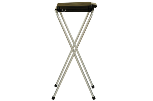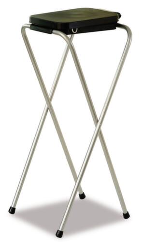 Met deksel - de opening gebeurt handmatig. rubberen ring voor de zakbevestiging. frame van staal galvanisch verzinkt in zilverkleurig. deksel van ABS in zwart. onderbouw vloerbeschermers.