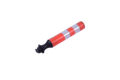 "description": "in 5 maten, van kunststof in rood, met 4 witte reflecterende strepen, zelfoprichtend, bij nood overrijdbaar",
